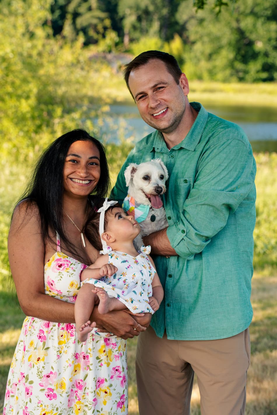 Bri and Jared with their beautiful daughter Clementine and faithful companion Cotton.
